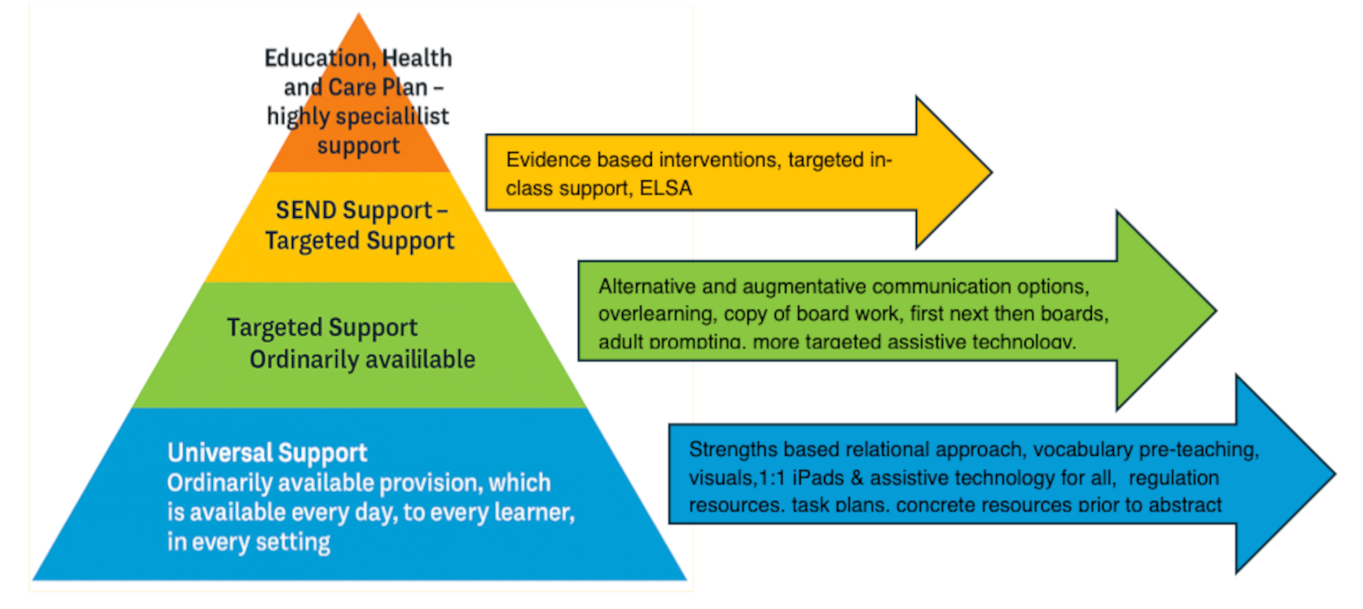 - Use of technology – Leveraging assistive tools and digital resources to enhance learning accessibility and engagement.